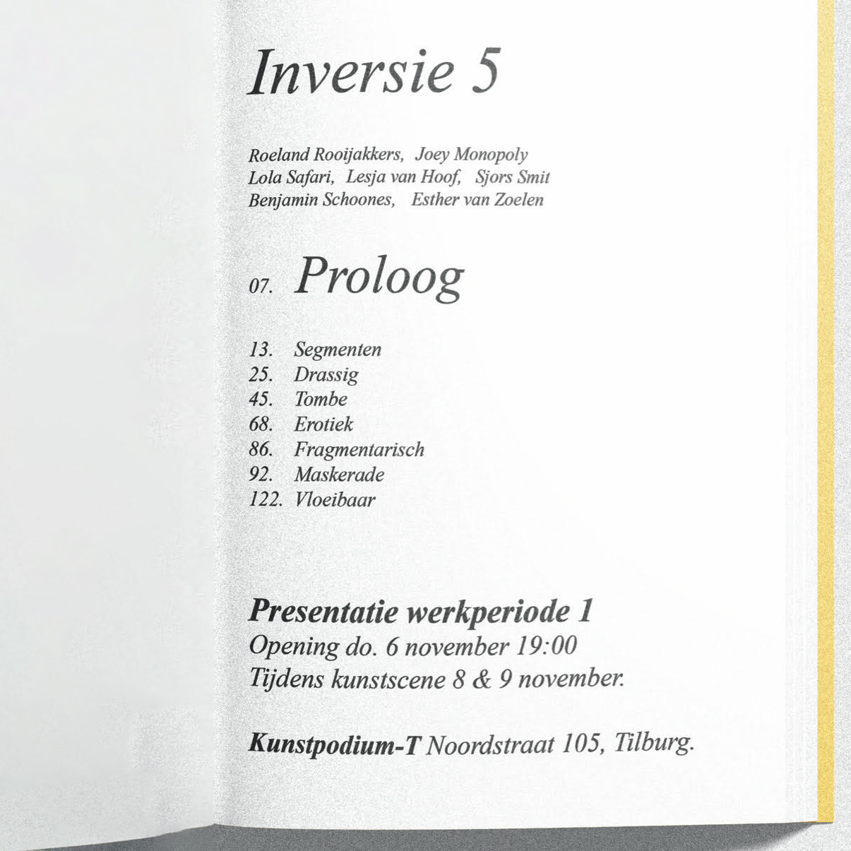 Inversie is een open en betrokken organisatie met oog voor het ontwikkelen van het essentiële en het onverwachte. Inversie is opgericht door Kunstpodium T, TAC (Temporary Art Centre) & Witte Rook in samenwerking met Stedelijk Museum Breda, Willem Twee Kunstruimte, Grafisch Atelier Den Bosch. Talenthub Inversie valt onder Talenthub Brabant en is geïnitieerd vanuit Kunstloc. Elke organisatie vertegenwoordigt een ander aspect van de professionele beroepspraktijk.