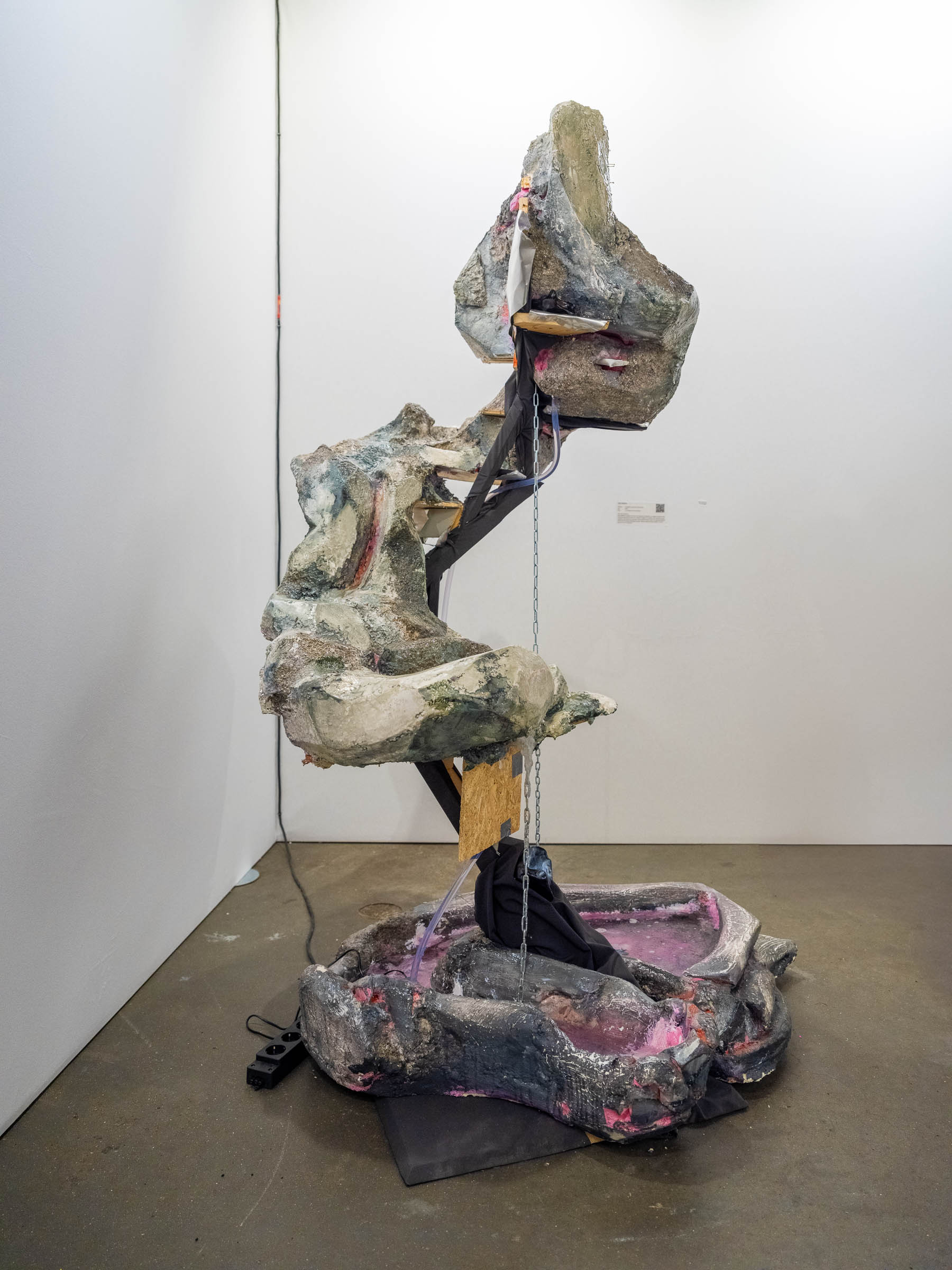 Ik ben heel tevreden over wat ik heb gemaakt – dat was die fontein – en hoe dat werk reageerde op de beurs. Deze sculptuur bevatte water dat bedoeld was om te schenken aan de bezoekers van de beurs. Dat ging er om dat ik mij naar hen dienstbaar zou opstellen en iets zou stellen tegenover het champagne drinkende publiek van de opening. Ik vond dat te heftig en te wild om uit te voeren omdat ik dat ook vanuit mijn eigen naaktheid wilde doen. Maar op die beurs was al zoveel naakt, letterlijk naakt, afgebeeld. En er was ook een modeshow waarbij er werken door modellen werden getoond. Alles waar ik op wil reageren was al zo onderdeel van de beurs dat ik me afvroeg of men mijn intentie wel kon lezen. En dat kon ik niet handelen. Wat ik meeneem van de fair is: wat als ik mijn intentie van maken tegenovergesteld is aan het ervaren van mijn bedoeling, dan gaat er iets mis. Maar toch kan ik ook iets negatiefs meenemen als een positieve ervaring omdat ik er lering uit heb getrokken.